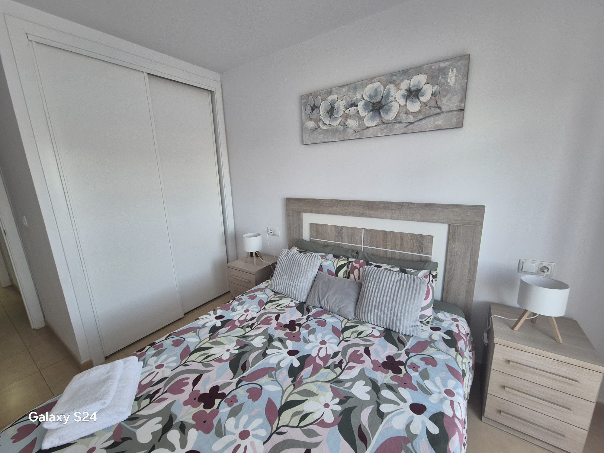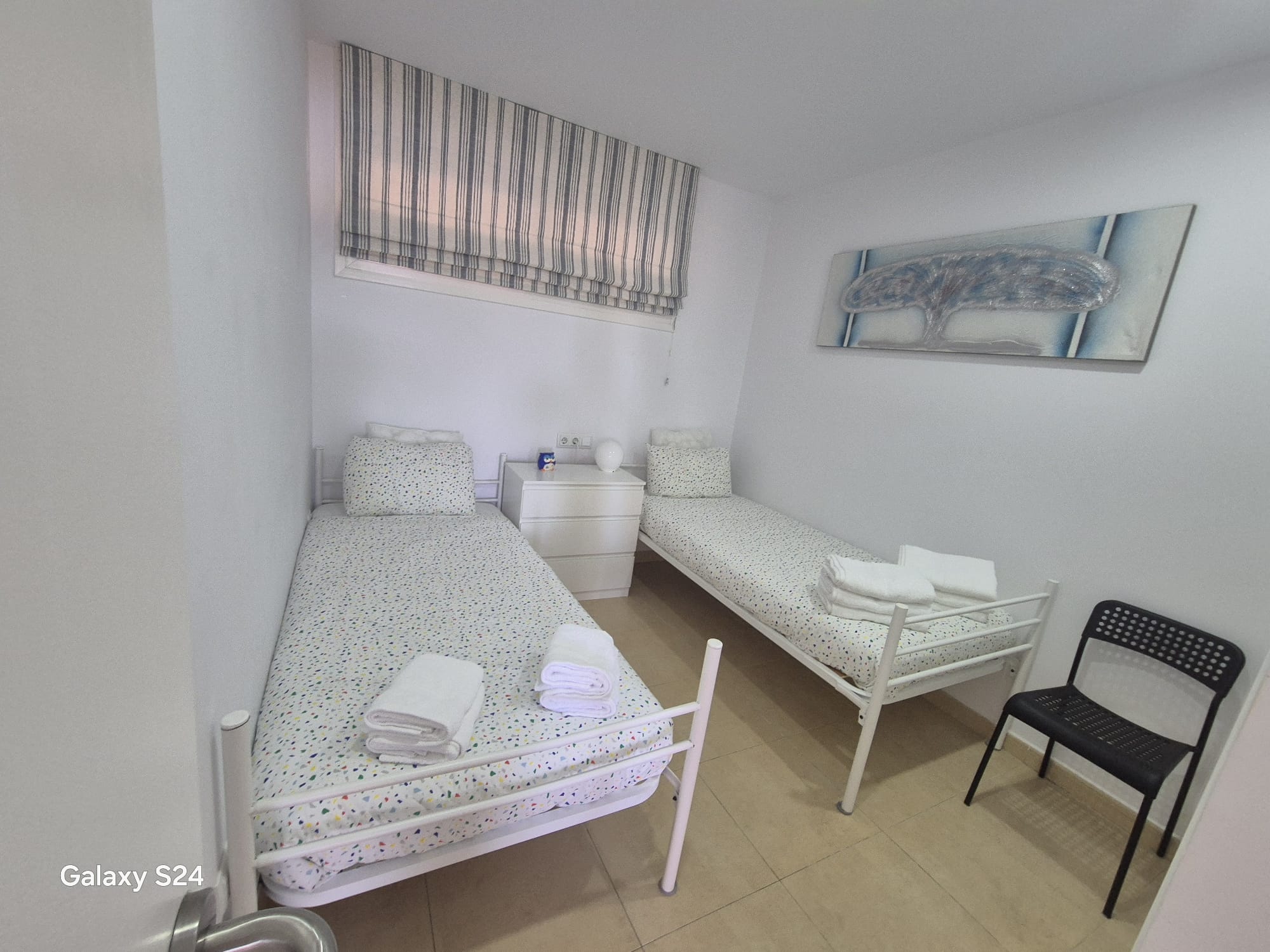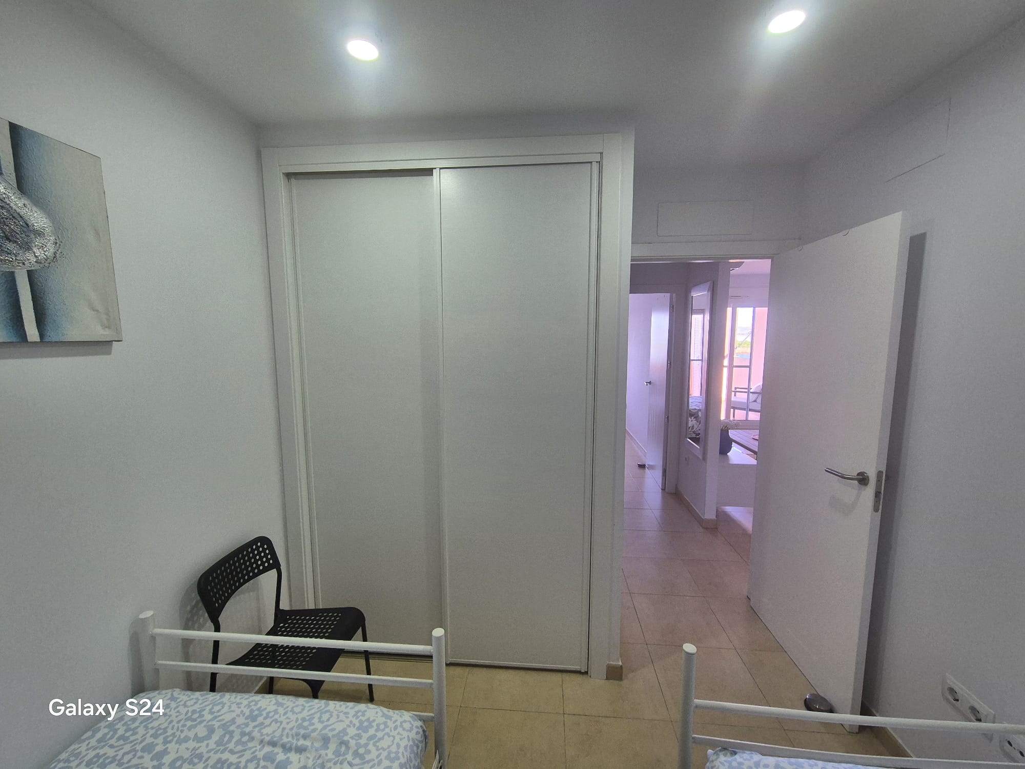 The accommodation includes a serene master bedroom with direct access to a private terrace, and a twin bedroom—both featuring generous built-in wardrobes for convenient storage.